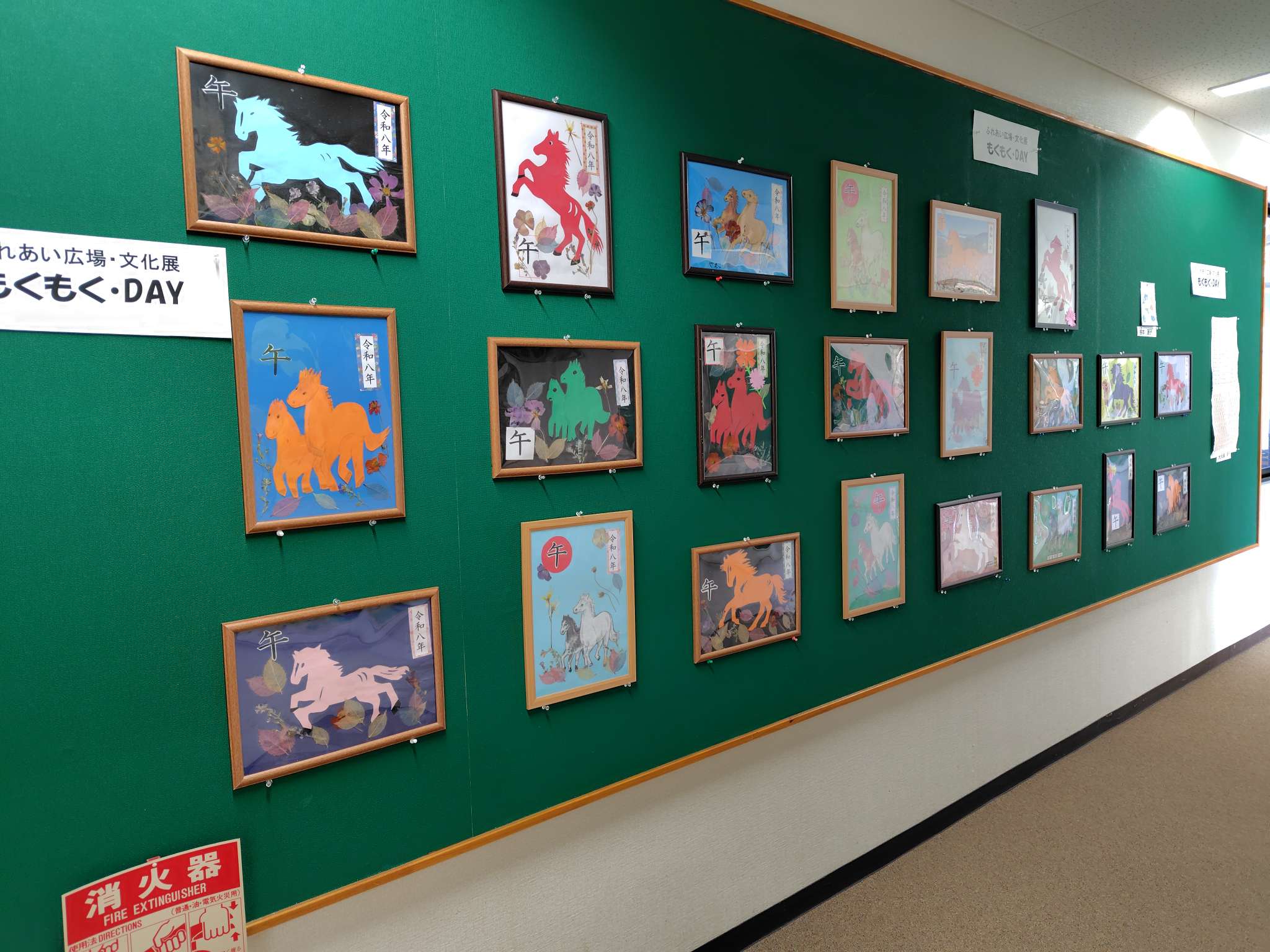 文化展では、もくもくDAYの方々が丹精込めて作った、来年の干支を題材にした作品、絵手紙の会や巨瀬町婦人会の作品がズラリと並び多くの人の目を引きました‼️